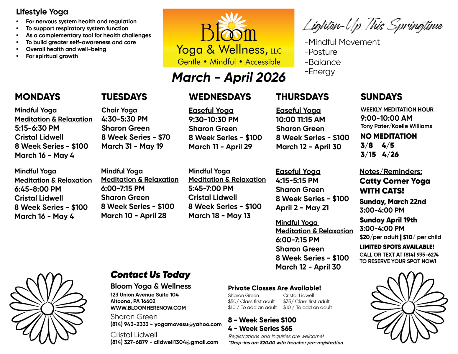 Contact Sharon or Cristal if you have any questions or would like to register for classes!